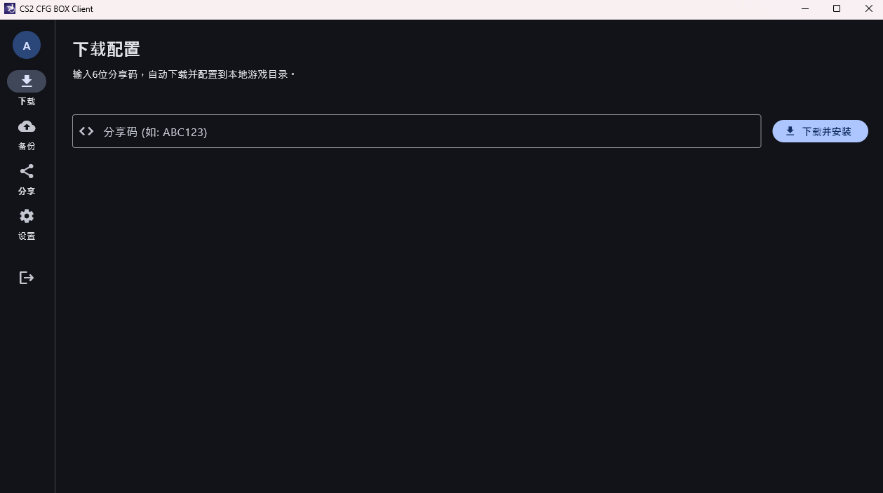 无论是分享给小白好友,或是在网吧不想翻找游戏目录,下载客户端,输入6位分享码,自动启动CS2并加载配置