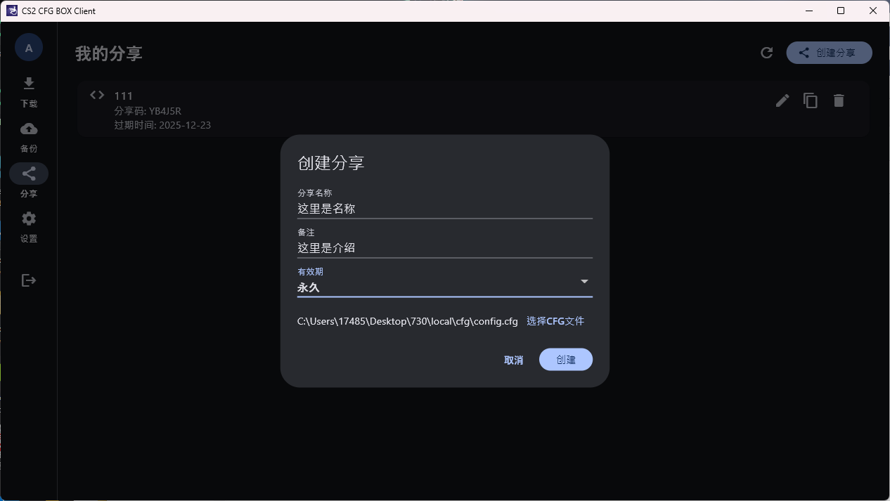 CFG文件设置好介绍、有效分享时间一键上传,小白一键下载,自动启动CS2并加载